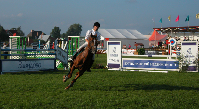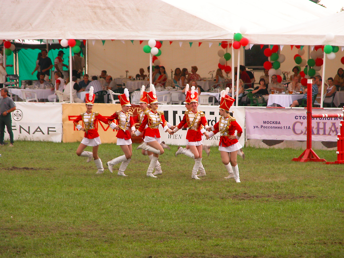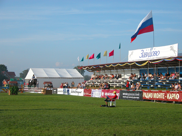 Уже стало традицией проводить конно-спортивный праздник в Завидово в последние выходные июля. Не стал исключением и этот 2004 год. Так что родное для меня место проведения выходных украсилось этим пафосным событием. Статус мероприятия становится «почти международным» — второй год приезжают участники из бывших республик бывшего СССР. Этот год от прошлых отличает некоторая экономия средств — нынче конкур пребывает под эгидой губернатора Тверской области, а не администрации президента. Так что всё немного скромнее, чем в предыдущие годы — чуть меньше гостей, чуть больше рекламы и спонсоров, вместо «Морального Кодекса» и «Високосного Года» вечером развлекали ВИА «Пламя» и техно-дэнс с девочками на подтанцовках. Зато ночной салют не хуже!