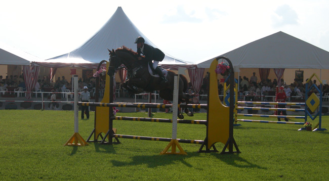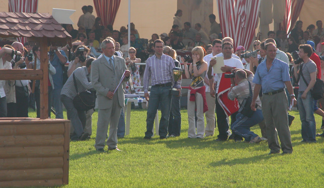 Гости VIP-зоны так же важны 😉 как и раньше. Такого количества Порше, Хаммеров и др. «экзотики» одновременно сложно где-либо увидеть. И всё это в сельской местности — лет 10 назад тут даже асфальтированных дорог не было. В общем — малый филиал Монте-Карло ;-). Собственно мероприятие мало кого волновало кроме самих участников — основная цель прибывших — себя показать, других посмотреть. Хотя, конечно, посмотреть на лошадок берущих препятствия до 2-х (!) метров высотой было приятно. Из дополнительных развлечений — тест драйв Мерседесов и Роллс-Ройса от Пан-Авто, АВЕС привёз Лотус, полёты на вертолётах (200 уе за 5 минут), тест-драйв яхт на базе ГлавУпДК (Главное Управление по обслуживанию дипломатического корпуса при МИД России) Завидово, модное дефиле на конях (!) от Salvatore Ferragamo, дискотека, салют. «Завидуйте — я в Завидово!»
