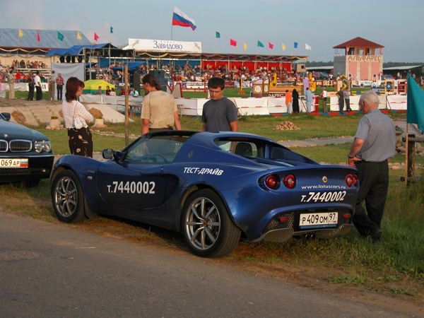 It has already become a tradition to hold an equestrian festival in Zavidovo on the last weekend of July. This 2004 year was no exception. So my native place for spending the weekend was decorated with this pompous event. The status of the event is becoming "almost international" - for the second year, participants from the former republics of the former USSR come. This year differs from previous ones by some cost savings - now the competition is under the auspices of the governor of the Tver region, and not the presidential administration. So everything is a little more modest than in previous years - slightly fewer guests, a little more advertising and sponsors, instead of "Moral Code" and "Leap Year" in the evening entertainment was provided by VIA "Flame" and techno-dance with girls as backup dancers. But the night fireworks are no worse! VIP zone guests are as important as before. It is difficult to see so many Porsches, Hummers and other "exotics" at the same time anywhere. And all this in the countryside - 10 years ago there were not even asphalt roads here. In short - a small branch of Monte Carlo ;-). The event itself was of little interest to anyone except the participants themselves - the main goal of those who arrived was to show themselves off and see others. Although, of course, it was nice to watch the horses taking obstacles up to 2 (!) meters high. Additional entertainment options include a test drive of Mercedes and Rolls-Royce from Pan-Auto, AVES brought a Lotus, helicopter flights (200 USD for 5 minutes), a test drive of yachts at the GlavUpDK (Main Directorate for Servicing the Diplomatic Corps at the Russian Ministry of Foreign Affairs) Zavidovo base, a fashion show on horseback (!) from Salvatore Ferragamo, a disco, and fireworks. A small report - "How I spent the weekend" plus 18 photos